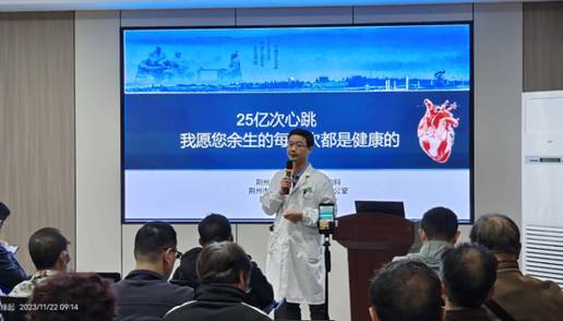 “什么是急性心梗?心梗发生后如何自救?”荆州市中心医院心血管内科副主任卢红涛以《心梗防治 刻不容缓》为题,结合案例、图文并茂地阐释了心梗发生的机理、发病前兆,介绍了心梗早期预防措施、心梗发生自救方法和心脏康复知识。卢红涛强调老同志要加强常识学习,及早预防,在日常生活中要合理饮食、控糖控压控体重、戒烟限酒、适量锻炼、培养好心态等。