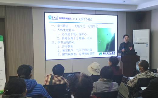 “顺四时而适寒暑,阴阳调和”“春应肝而养生,夏应心而养长,长夏应脾而变化,秋应肺而养收,冬应肾而养藏”“春夏养阳,秋冬养阴……”荆州市中心医院主任医师戴国军讲授了《四季养生及食疗》,为老同志们普及了春夏秋冬四季养生之道和科学饮食之法,深受老同志们欢迎。