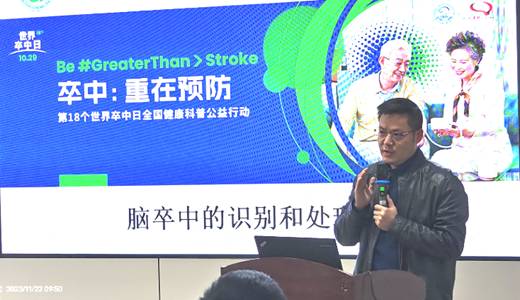 “什么是脑卒中?如何预防脑卒中?”荆州市中心医院神经内科主任苏峻峰主讲了《脑卒中的识别和处理》,重点介绍了脑卒中(中风)的识别、预防措施、应急处理和认识误区。苏峻峰建议老年同志们对照“8项危险因素”评分卡,时刻关注身体指标,定期体检,养成健康的生活方式,做好疾病预防。