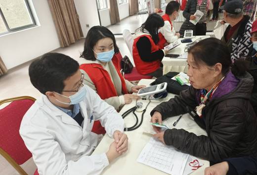 在健康问题咨询和义诊区,10余名医生和护士热情、专业解答老同志们疑问,有的给老同志们解读体检报告情况、有的给老同志们测量血压、有的为老同志们把脉个性化健康问题……
