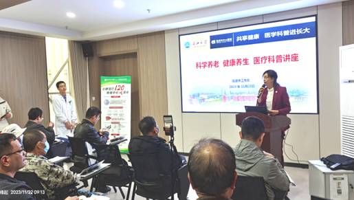“今天的讲座非常实用。我们老同志们不仅学习到心血管健康知识和急救技能,还和专家面对面交流,咨询了体检报告和健康管理”。 “我多年患有头痛病了,但我腿脚不好,去医院很不方便,今天医生到学校坐诊,真是太好了!”……退休老同志高度肯定了医学知识讲座和义诊活动,有的还全程录像回去教授家人们学习健康知识,大家非常感谢学校和附属医院对老同志们的关心和爱护。