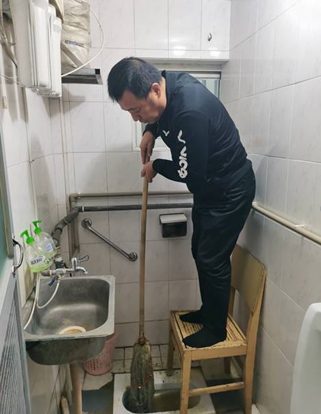 11月13日,沙市校区退休职工反映活动室一楼厕所堵塞了、二楼的门锁有问题,校区办主任黄晓南立即亲自动手疏通厕所下水管、找工具动手修理好门锁……