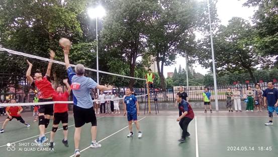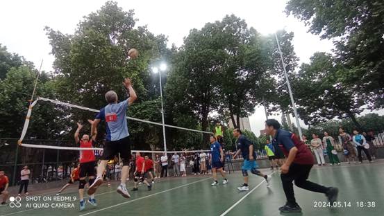 在A 组5场比赛中,离退休男排勇于挑战上届冠军队机关1队,全力以赴面对专业队教体学院,和实力相当的文理学院代表队一决高下。面对年轻的强劲对手,老将们从容应对、顽强拼搏、拼搏顽强团结善战、身手敏捷、奋力救球、手足并用、防守固若金汤,给全校师生呈现了一场又一场精彩对决,赢得现场观众的阵阵喝彩,吸引了许多排球专业的研究生和本科生到现场观摩。比赛结束了,观众和队员们都久久不肯离去,大家一起回味、讨论精彩的扣球和灵活的攻防,师生们交相称赞老同志强健的体魄、顽强的精神、高超的球技和活力四射的运动身姿......