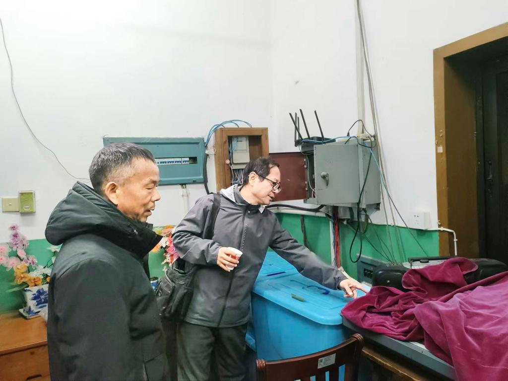 11月8日,处长张涛及副处长郭启炜在西校区检查。