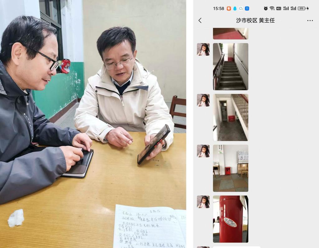 由于时间紧迫,17:53分,检查组通过电话视频的方式对沙市校区的安全情况进行了检查,并召开了电话会议,重申了上述安全工作的重要性和具体要求。通过这种方式,确保了全校各校区安全工作的同步推进和全面覆盖。