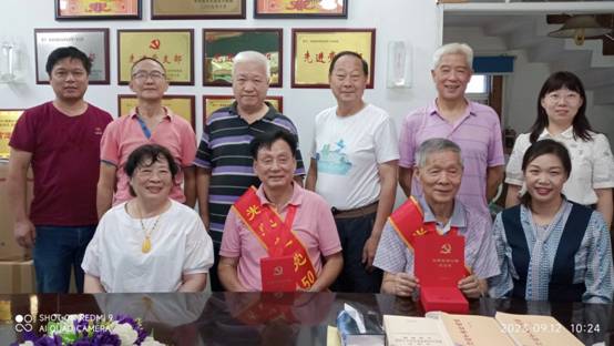 9月12日至20日,离退处党委书记、处长张涛向近期在校的,党龄达到50周年的朱新芳、柳绍元、杜海远、杨绍武、梁盛宏五位退休老党员上门颁发“光荣在党50年”纪念章。