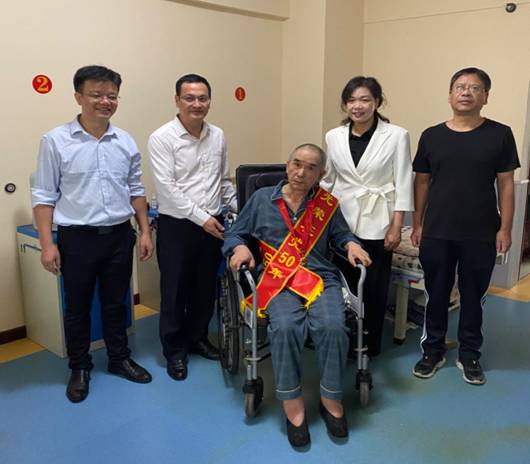 张涛书记一行与各位老党员亲切交谈,并为老党员们戴上“光荣在党50年”纪念章,向他们光荣在党50年,矢志不渝跟党走,致以崇高的敬意和祝福,感谢他们多年来为长大的发展贡献力量,并细心叮嘱要注意保重身体,继续发挥余热,永葆共产党员的初心与本色。