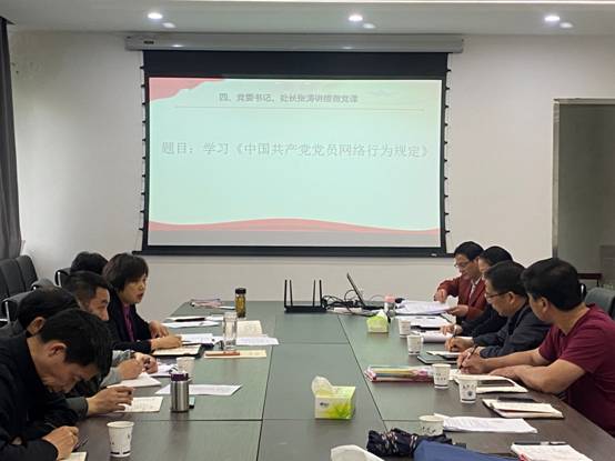 集中学习后,张涛处长以《中国共产党党员网络行为规定》为题讲授微党课。
