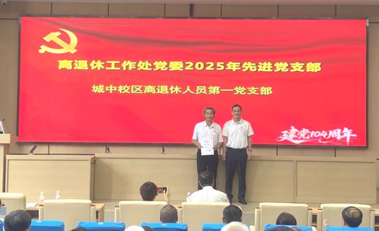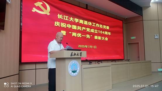 副处长郭启炜宣读《省委组织部 省委老干部局 省委离退休干部工委关于授予123 个基层党组织全省离退休干部“示范党支部”称号的通知》《教育部关工委关于公布2024年“读懂中国”活动入选作品名单的通知》《中共bevictor伟德官网委员会关于表彰“两优一先”的决定》《中共bevictor伟德官网离退休工作处委员会关于表彰“两优一先”的决定》“光荣在党50年”党员名单。