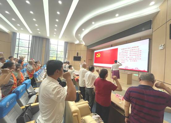 离退休党员代表城中校区第二党支部书记李琴带领党员重温入党誓词。