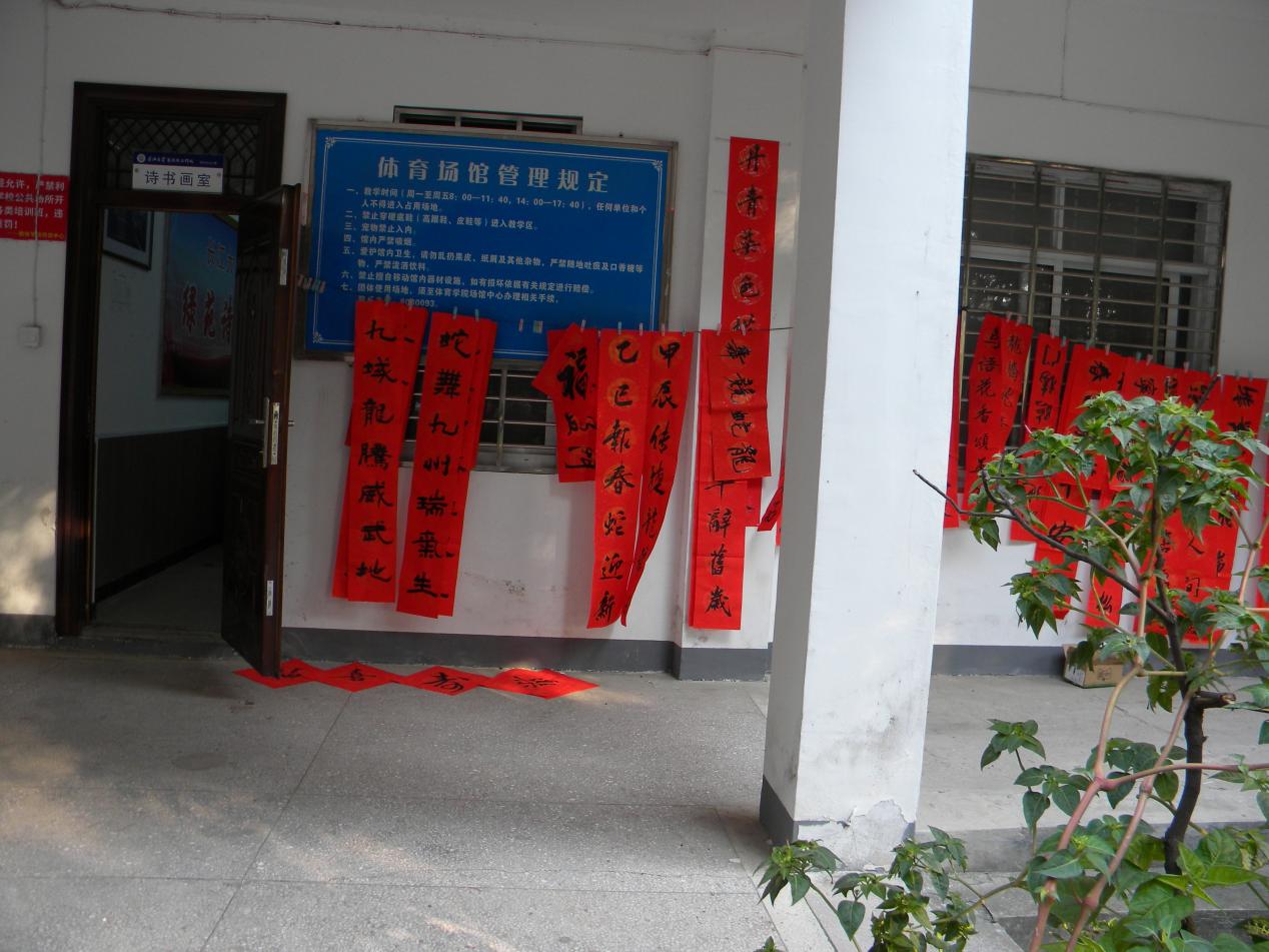 活动现场,处处洋溢着喜庆氛围。三条醒目的红色横幅高悬,“笔蘸春风书就校园千幅锦,情融瑞彩送来学府万家馨”,传递着新春的美好祈愿,点明了活动主题。门柱上,墨香未散的对联“墨韵沁芳林,毫端瑞霭环学府。联情融雅室,笺上祥光绕校园”,更是增添了几分文化雅韵。