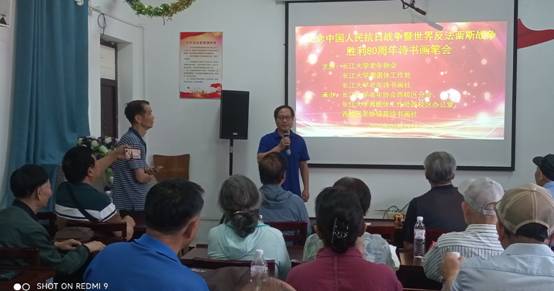 本次活动共展出诗歌10余篇、书画作品108幅。刘治晏、王家政、沈光明、周隆久、李兰等老同志以激昂的声音和真挚的情感,朗诵自创的纪念诗篇。书画爱好者以笔为剑,书写了“和平”、“胜利”等主题词句和楹联。大家共同缅怀先烈,弘扬爱国主义精神,珍视和平,传承中华民族坚韧不拔的抗战精神。